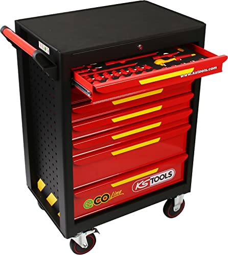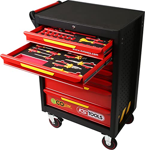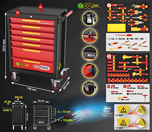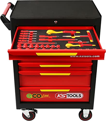 KS Tools 117.6144 Ecoline Werkstattwagen mit 42 isolierten Werkzeugen für Hybrid-und Elektrofahrzeuge, 910 x 750 x 550 mm