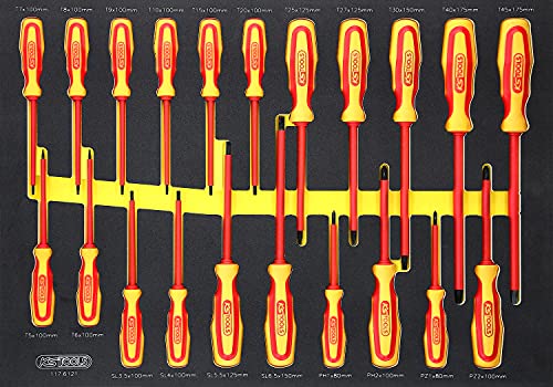 KS Tools 117.6155 PERFORMANCEplus Werkstattwagen e10, bestückt mit 164 VDE-Spezial-Werkzeugen für Hybrid-/Elektrofahrzeuge in 4 Einlagen für 4 Schubladen