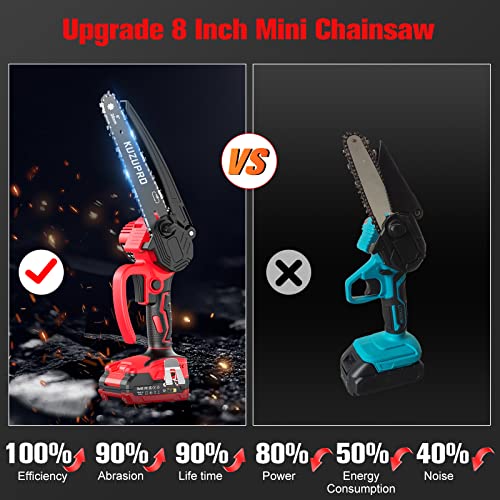 【Aufgerüsteter bürstenloser Antrieb】 Die KUZUPRO Mini Kettensäge verfügt über einen leistungsstarken bürstenlosen Antrieb, der die Lebensdauer um 90% erhöht, die Ausgangsleistung um 80% erhöht und den Energieverbrauch um 50% reduziert, so dass Sie ohne Stau, geräuscharm und mit hoher Effizienz Abmähen können. Mit einer Kettengeschwindigkeit von 10m/s und einer 8-Taxe-Führungsschiene dauert es ungeachtet etwa 8 Sekunden, um Stämme mit einem Durchmesser von ca. 6 Taxe zu Abmähen!