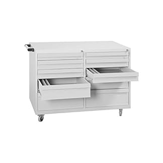 Lüllmann Werkstattwagen zum mobilen Transport von Werkzeug und flexiblem Arbeiten in Betrieben, Werkstätten, Lager-, Logistik- und Industriebetrieben. Die Schubladen mit unterschiedlichen Maßen sind auf die verschiedenen Werkzeugtypen harmonisch, der Wagen lässt sich über den Fahrgriff bequem bewegen. Die Feststellbremsen abwenden unbeabsichtigtes Wegrollen. Langlebige, pflegeleichte, verschweißte Stahlkonstruktion, 2x 5 Schubladen: 75 mm, 2x 100 mm, 150 mm, 200 mm – von oben nach nieder, Je 5 Schubladen Zentralzylinderschloss inkl. 2 Schlüssel, Mit fest verschweißtem Fahrgriff für gute Zugkraft, 4 Vollgummirollen, davon 2 feststellbar, Korpus und Schubladen elektrostatisch, glatt pulverbeschichtet, GS-zertifizierte Qualität und Sicherheit, Auslieferung: Komplett verschweißt – wohl Rollen müssen angeschraubt werden. Farbe: RAL 7035 lichtgrau, Maße: Höhe: 840 mm, Breite: 1090 mm,Hölle: 600 mm Kostenlose Standardlieferung Werktags (fester Tag) Mo.-Do. von 8 Uhr bis 16 Uhr frei Bordsteinkante. / Alleinig Versandoptionen: Premium Versand „Lieferung bis 10Uhr“ Amazon ASIN:B06XWWY6WS Ertrag 99.-Euro / Premium Versand bis 12 Uhr Amazon ASIN: B06XX7XL7V Ertrag: 69.-Euro falls gewünscht bitte dazu kaufen und in den Warenkorb legen. Ein Aushalten der Ware ist bei allen von uns angebotenen Versandoptionen nicht Bestandteil der Auslieferung.