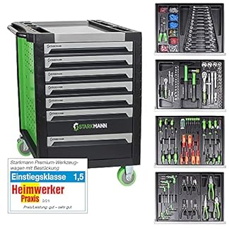 Ein praktischer mobiler Werkstattwagen, mit dem Sie Ihre Werkstatt allumfassend arrangieren können, ergonomisches Design für eine bequeme Handhabung.