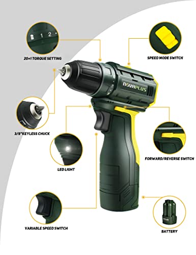 【16,8 V Abenteuer und 2 variable Geschwindigkeiten】Der Novaplus Elektro-Bohrschrauber bietet starke und stabile Leistung und eine lange Ablaufzeit. Dieser Akku-Bohrschrauber mit 2 Geschwindigkeiten (0-400 & 0-1400 U/min) mit verstellbarer Kupplung bietet Ihnen die Vielseitigkeit, durch verschiedene Materialien zu bohren und eine Differenziertheit von Bits zu verwenden.