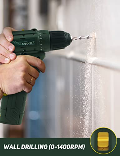 【20 + 1 Drehmomenteinstellung und maximales Drehmoment 354 in lbs】Der Akku-Bohrer bietet eine präzise Kontrolle beim Bohren, was verhindert, dass die Schraube zu unergründlich sinkt, den Schraubenkopf abisoliert oder sogar den Schraubschaft bricht. Für verschiedene Anwendungen stehen 20 Drehmomente zur Verfügung und zum Bohren wird 1 Drehmoment verwendet.