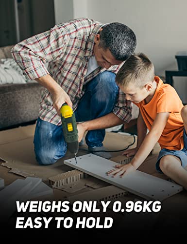 【Effizientes Pflügen und ergonomisches Design】Kompaktes und leichtes Design, ausgezeichneter Triebwerk, minimiert die Ermüdung der täglichen Schraub- und Bohraufgaben, der gummierte Griff gibt Ihnen einen komfortablen Griff, in Vibration wird bei schwerer Abhandlung reduziert und kann leicht mit einer Hand bedient werden.