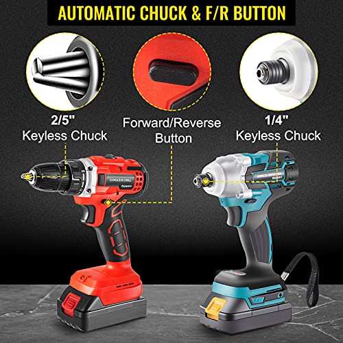 【SUPERKONFIGURATION & EINSTELLBARER MODUS】 – Dieser Akku-Bohrschrauber bietet ein Drehmoment von 35 Nm mit einer 21-Positionen-Kupplung, mit der Sie die Leistung eichen und zwischen zwei Geschwindigkeitseinstellungen stimmen können. Der Schlagschrauber verfügt über einen Hochleistungsmotor, der ein Drehmoment von 140 Nm und eine Drehzahl von 2900 U/min liefert.