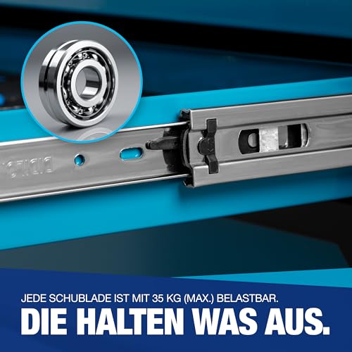 ✅ 7 Schubladen mit kugelgelagerten Schienen, 6 davon mit Werkzeug gefüllt