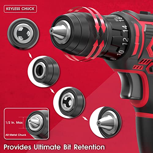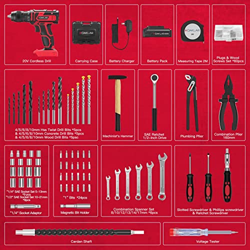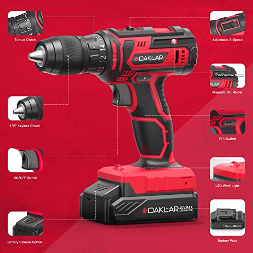 OAKLAR OACD20AD133 Akku-Bohrmaschinen-Set, 20 V 1/2 Zoll Bohrmaschine mit 133-teiligem Werkzeugset