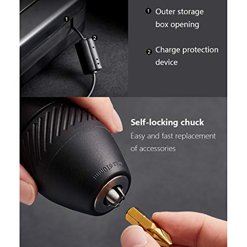 QHYXT 3,6-V-Akku-Bohrmaschine, selbstsicherndes 10-mm-Bohrfutter, 9,6 Nm, mit 10-Batch-Kopf, 4000-mA-Akku und Ladegerät