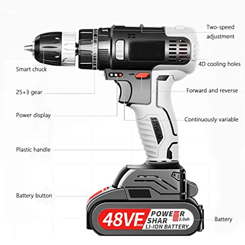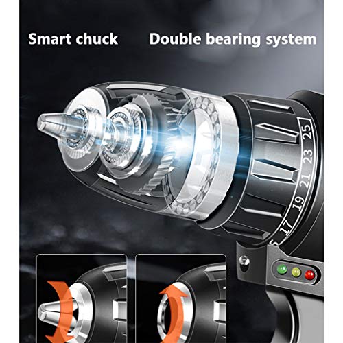 QHYXT Akku-Bohrmaschine, bürstenloser 48-V-Bohrmaschinenantrieb, 590-Zoll-Pfund-Drehmoment, 25 + 1-Drehmomenteinstellung…