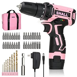 SHALL Pink wiederaufladbare Batterie-Bohrer-Set, 12 V, elektrische Bohrmaschine, Kombi-Kit mit 0,95 cm Schnellspannfutter, 2,0 Ah Li-Ion-wiederaufladbare Batterie, 7 HSS-Bohrer, 39 Teilbereich Schraubendreher-Bits, Akkuladegerät und Aufbewahrungstasche enthalten, zum Bohren von Holz/Metall, Damen-DIY-Projekte