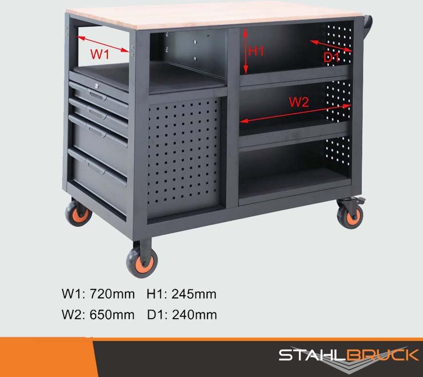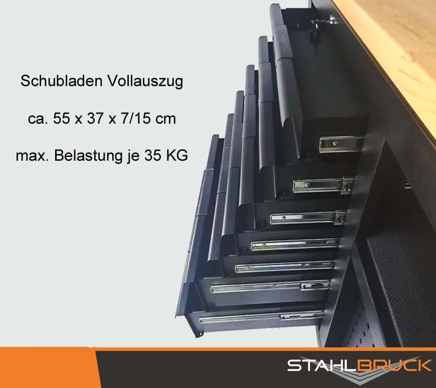 Stahlbruck Werkstattwagen WW 44 XXL, mit Hartholzplatte, 11 Schubladen