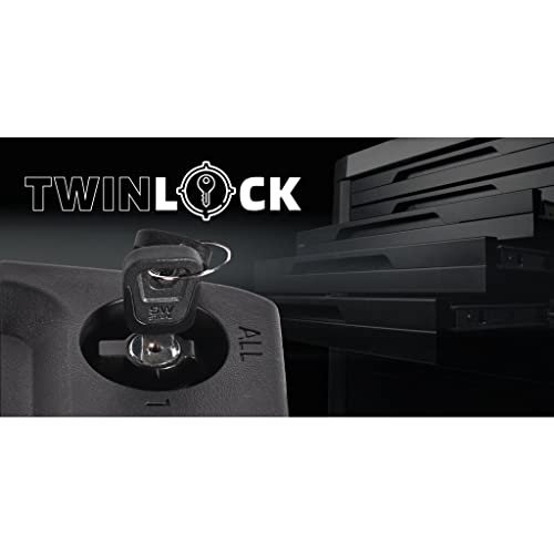 Der Schubladenschrank ist ausserdem mit dem patentierten Twin-Lock System ausgestattet. Anders als bei einer gewöhnlichen Aufbewahrung, kann unser Schloss so eingestellt werden, dass mehrere Schubladen gleichzeitig geöffnet werden können oder so, dass immerhin eine Schublade aper stehen kann. Auf diese Weise hat man die Möglichkeit ihn zu konfigurieren wie es am Besten zur Ausarbeitung passt. Der Wagen ist natürlich alias universal abschließbar mit Schloss an der Seite.