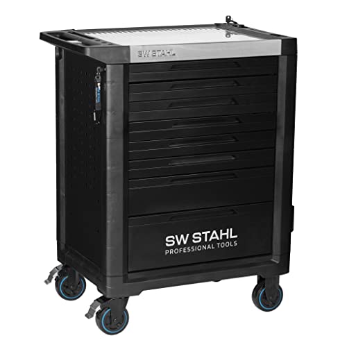 SW-Stahl 07101L Profi-Werkstattwagen TT801, schwarz, unbestückt I Werkzeugwagen leer I Werkstatt Ordnungssystem I Werkstatteinrichtung Profi I Rollwagen abschließbar I 8 Schubladen I Werkstatt-Wagen