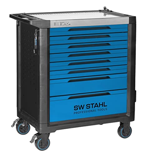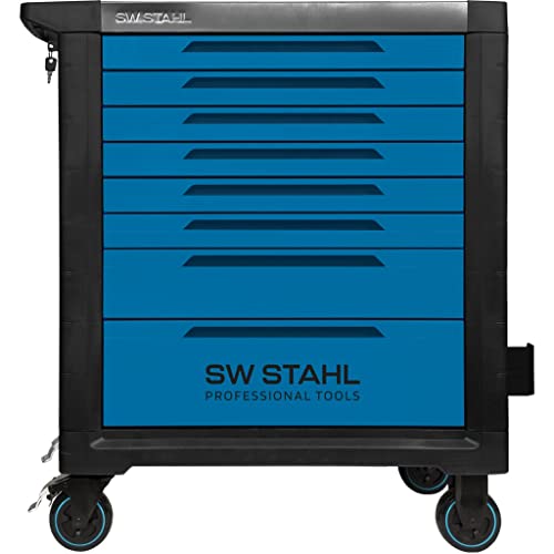 SW-Stahl 07110L Profi-Werkstattwagen TT802, blau, unbestückt I Werkzeugwagen leer I Werkstatt Ordnungssystem I Werkstatteinrichtung Profi I Rollwagen abschließbar I 8 Schubladen I Werkstatt-Wagen