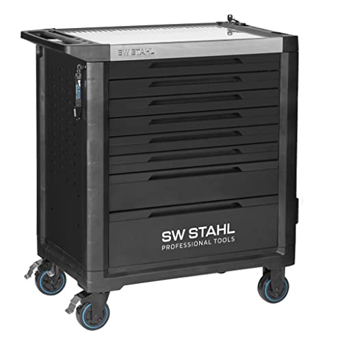 SW-Stahl 07111L Profi-Werkstattwagen TT802,schwarz, unbestückt I Werkzeugwagen leer I Werkstatt Ordnungssystem I Werkstatteinrichtung Profi I Rollwagen abschließbar I 8 Schubladen I Werkstatt-Wagen