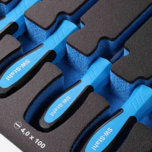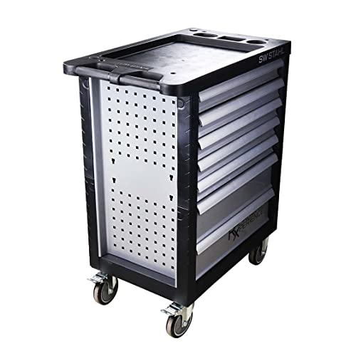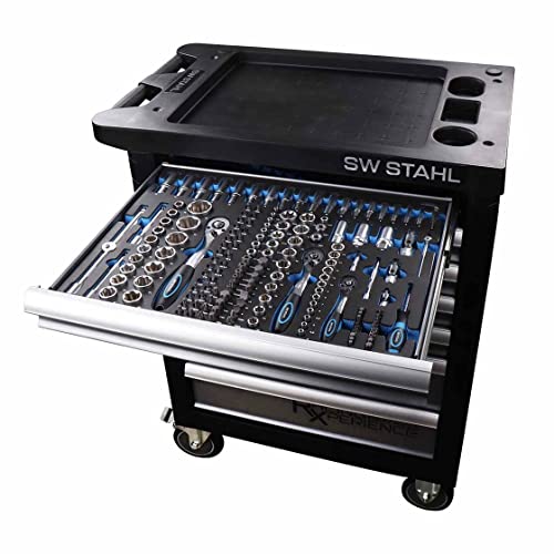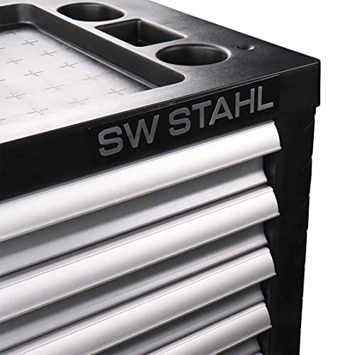SW STAHL Werkstattwagen | 7 Schubladen | 3 Schubladen bestückt | 207 Werkzeuge | Premium-Qualität | Aufbewahrung in Schaumstoffmodulen | Steckschlüssel 171-teilig | Schraubenschlüssel 24-teilig | Zangen und Schraubendreher 12-teilig