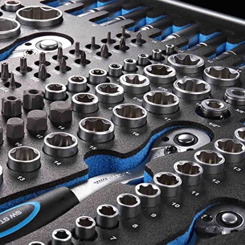 SW STAHL Werkstattwagen | 7 Schubladen | 3 Schubladen bestückt | 207 Werkzeuge | Premium-Struktur | Werkstattwagen qua 7 Schubladen | ?Worker-Set? qua 3 bestückten Schubladen | qua in der Regel 207 Werkzeugen in Premium-Struktur | Hinterlegung in Schaumstoffmodulen