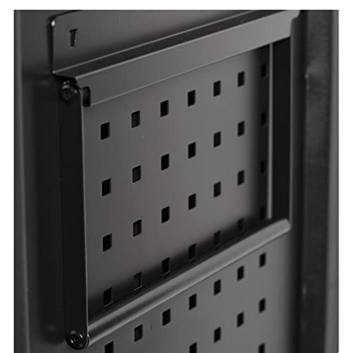 Die Räder mit TPE Laufflächen sind voll gummiert. Dies sorgt für ein leises Abwickeln und den nötigen Grip. Außerdem hat der Wagen eine High-Tech-Bremse zum einfacheren Lösen der Rollen. Die Wand kann mehr: Beide Seitenwände haben eine perforierte Wand (Lochwand). Hier findet sich viel Platz für dein Zubehör. Ein Dosen- und Papierrollenhalter sind im Werkstatt Rollwagen bereits vorhanden. Weiteres Zubehör für ein individuelles Arbeiten kann jederzeit dazu bestellt werden.