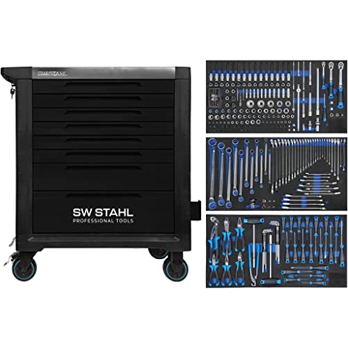 SW-Stahl Z3209 Profi Werkstattwagen TT802 schwarz I 8 Schubladen I 3 Schubladen gefüllt I 304 teilig I Werkstatt Rollwagen mit Werkzeug bestückt I Twin-Lock I Werkstattwagen kit I voll ausgestattet