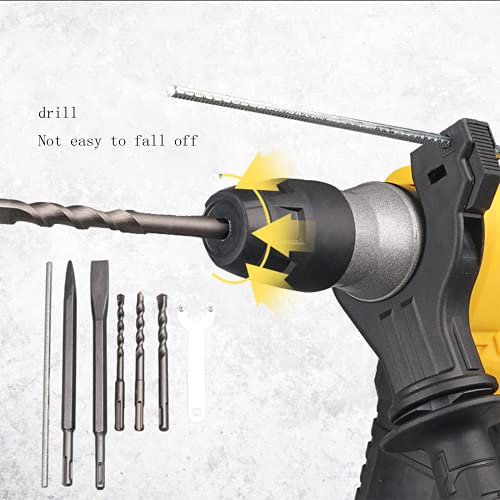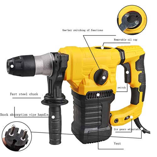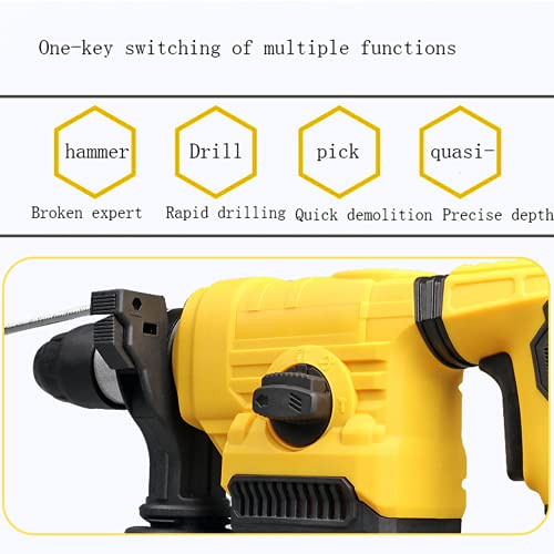 ☆ Multifunktion: Der Bohrhammer verfügt über mehrere Moduswähler – sie können zwischen Bohrer, Bohrhammer, Meißel und Meißelausrichtung umschalten, wodurch die Zeit verkürzt und die Effizienz verbessert wird. Es verfügt auch über innovative Optionen zur Annullierung des Meißels, mit denen der Bohrer im besten Winkel bearbeitet werden kann, und der elektrische Hammer kann die Anforderungen von mehr Arbeitsbedingungen schließen.