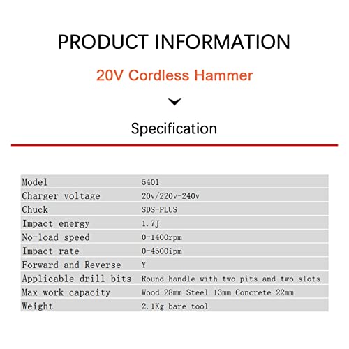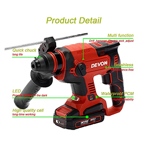 TEMSOOM Akku-Bohrhammer Light Duty Brushless 5401 Impact 1.7J 1400rpm 4500ipm 2.1Kg Universelle Devon Flex Akku…