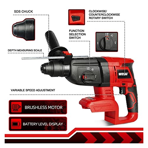 TEMSOOM WOSAI Elektrische Schlagbohrmaschine Bohrhammer Bürstenloser Akku-Hammer Elektrische Bohrmaschine Kompatibel mit…