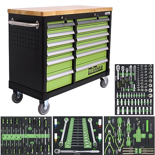 TRUTZHOLM Werkstattwagen Deluxe 2 x 6 Schubladen Massive Arbeitsplatte 4 Schubladen bestückt