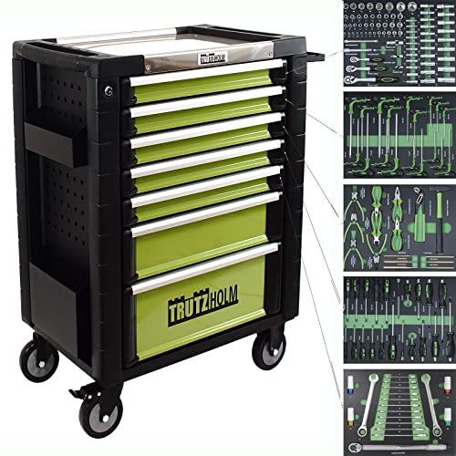 TRUTZHOLM Werkstattwagen Werkzeugwagen Montagewagen 153 TLG. bestückt 7 Schubladen + Rückwand + Ablagen Zentralverriegelung | Soft-Close-System | Vollauszug