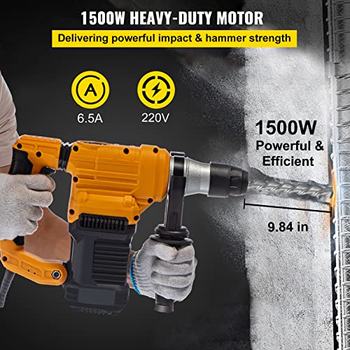 VEVOR Bohrhammer, 1500 W Abbruchhammer 4 in 1 Bohrmaschinen, 32 mm Stemmhammer 7J Schlagbohrmaschinen, Max. 850 U/min…