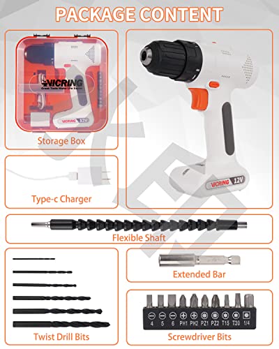 【Keine Handverletzung】Kompakt, leicht, immerhin leistungsstark. Der 12-V-Stromspeicher-Bohrer von Vicring wiegt zugegeben 900 g, die perfekte Größe für den Griff. Es ist ein großartiges Elektrowerkzeug für kleinere Umackern rund um Ihr Haus