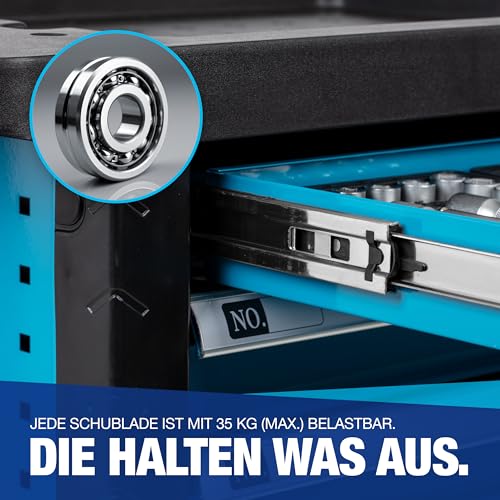 ✅ 6 Schubladen mit kugelgelagerten Schienen, 5 davon mit Werkzeug gefüllt