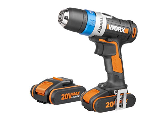 WORX WX178.1 Ai Drill Akku Bohrschrauber 20V mit automatischer Bohrfutter-Arretierung, elektronischer Drehmomenteinstellung, Pulse-Mode und Bitlock – Mit 2 Li-Ion Akkus und Ladegerät