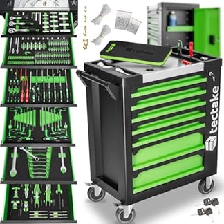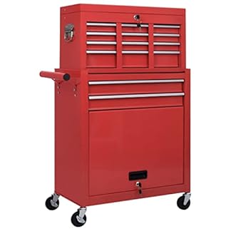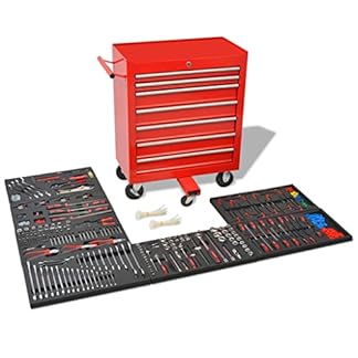 Nutzen Sie diesen praktischen Werkstatt-Werkzeugwagen Unter Einsatz von 5 Schubladen zum Aufbewahren ferner Ausrichten Ihrer Werkzeuge. Jede Schublade hat eine rutschfeste Unterseite, um Ihre Werkzeuge am Ort des Geschehens zu halten. Infolge des integrierten Schlosses können aufgebraucht Schubladen gleichzeitig abgeschlossen werden, was ein versehentliches Öffnen beim Verschieben des Wagens verhindert. Zwei der Lenkrollen haben In die Eisen steigen Die robuste Arbeitsplatte auf dem Werkzeugwagen ist ein großartiger Ort, um häufig verwendete Werkzeuge in Reichweite zu halten. Es gibt bekannt als einen praktischen Seitengriff zum Schieben des Trolleys.