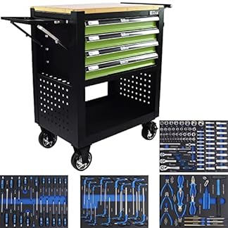 €249,00Produkt kaufenTRUTZHOLM Werkstattwagen Profi Compact Massive Holzplatte mit 4 Schubladen bestückt + Stauraum Montagewagen Werkzeugwagen inkl. Werkzeug Seitenablage (Grün/Orange/Schwarz) (Grün/Schwarz Bestückt)